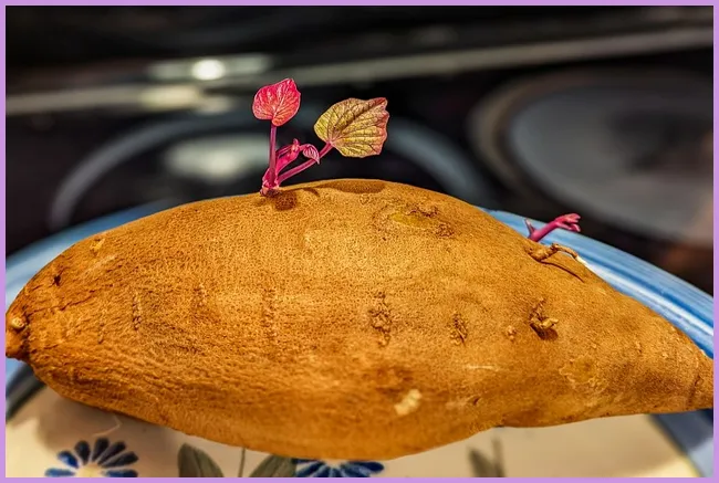 - 고구마를 물에 담가 발아 시킵니다.
